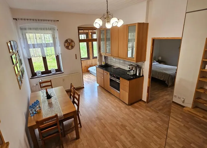 Une cuisine complète contient à la disposition des hôtes un réfrigérateur et un four. Des équipements de cuisine tels qu'une cafetière/théière sont fournis pour offrir aux clients une expérience pratique. Le Pierogowo Grota traite les touristes avec une cuisine polonaise et se trouve à 500 mètres. Vous pourrez également prendre un bus à l'arrêt de bus Karpacz Osrodek zdrowia, située à moins de 10 minutes à pied, pour explorer le reste de Karpacz. L'accès à la randonnée, l'équitation et le bowling est offert aux invités actifs. De plus, des jeux de table garantissent une expérience amusante pour les enfants.